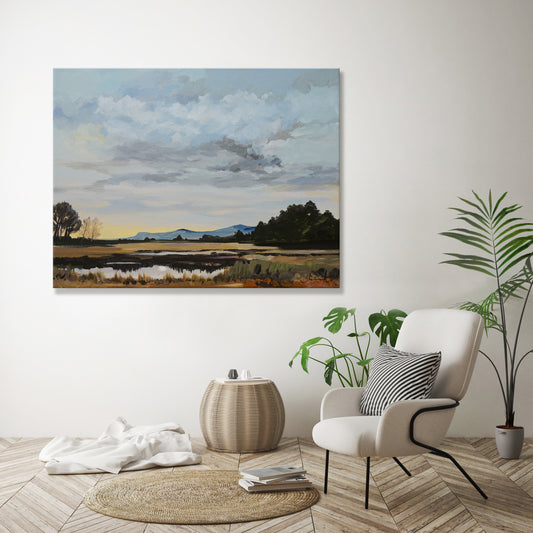 Black Sand Beach Under A Cloudy Sky - Art Print