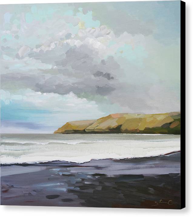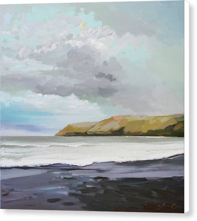 Black Sand Beach Under A Cloudy Sky - Canvas Print