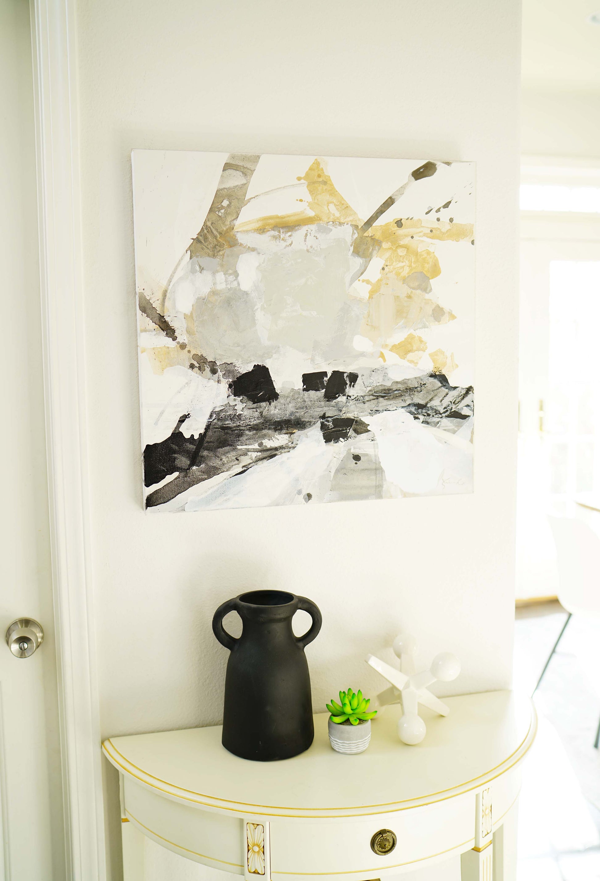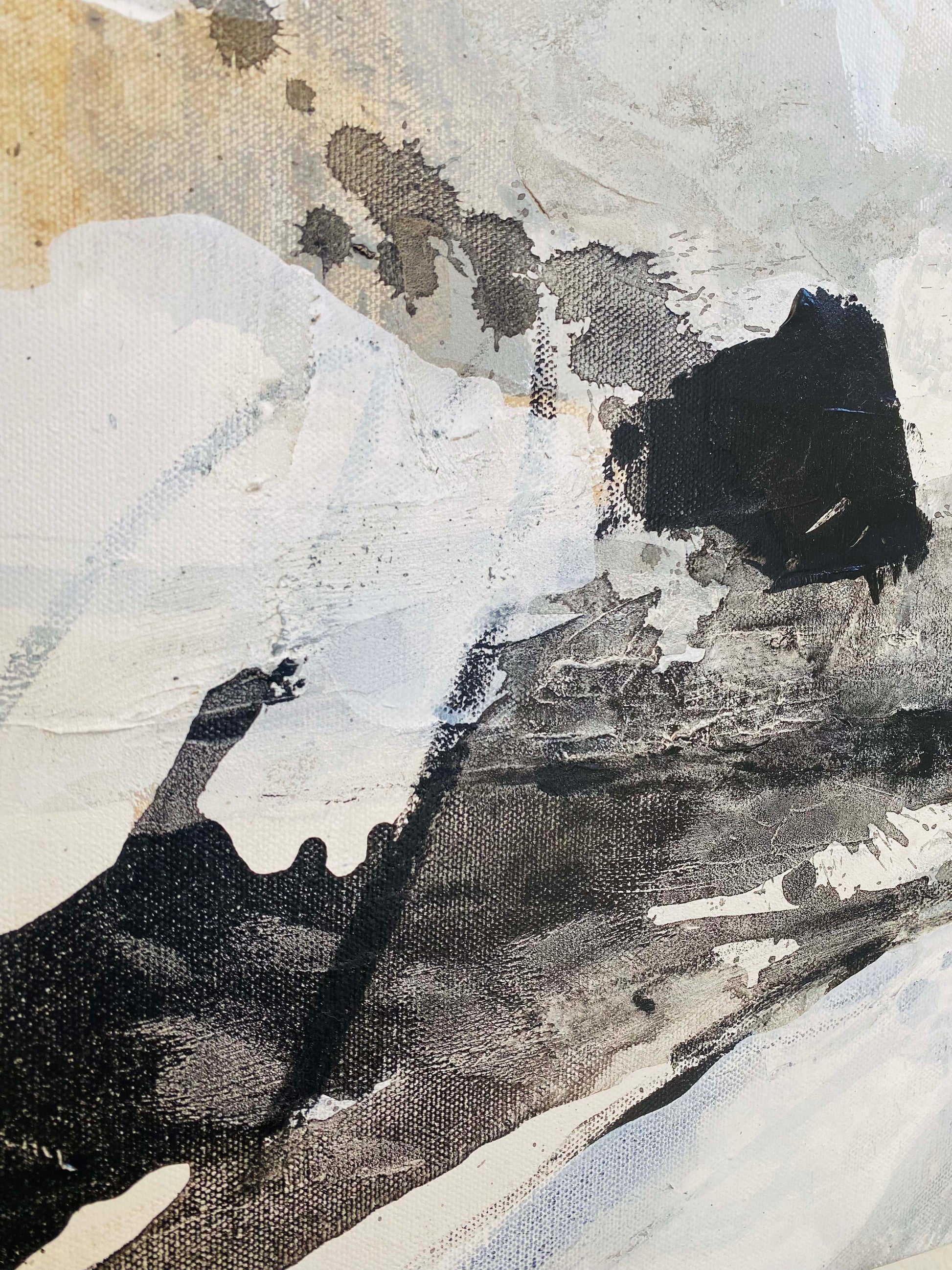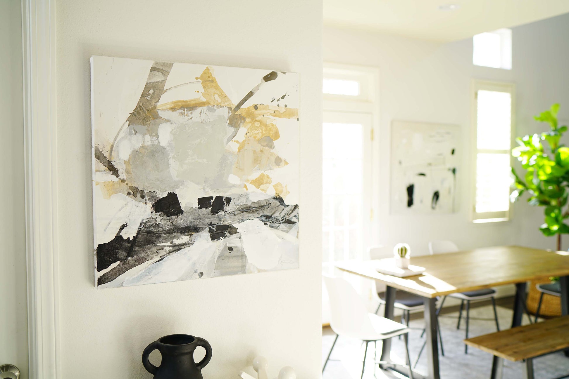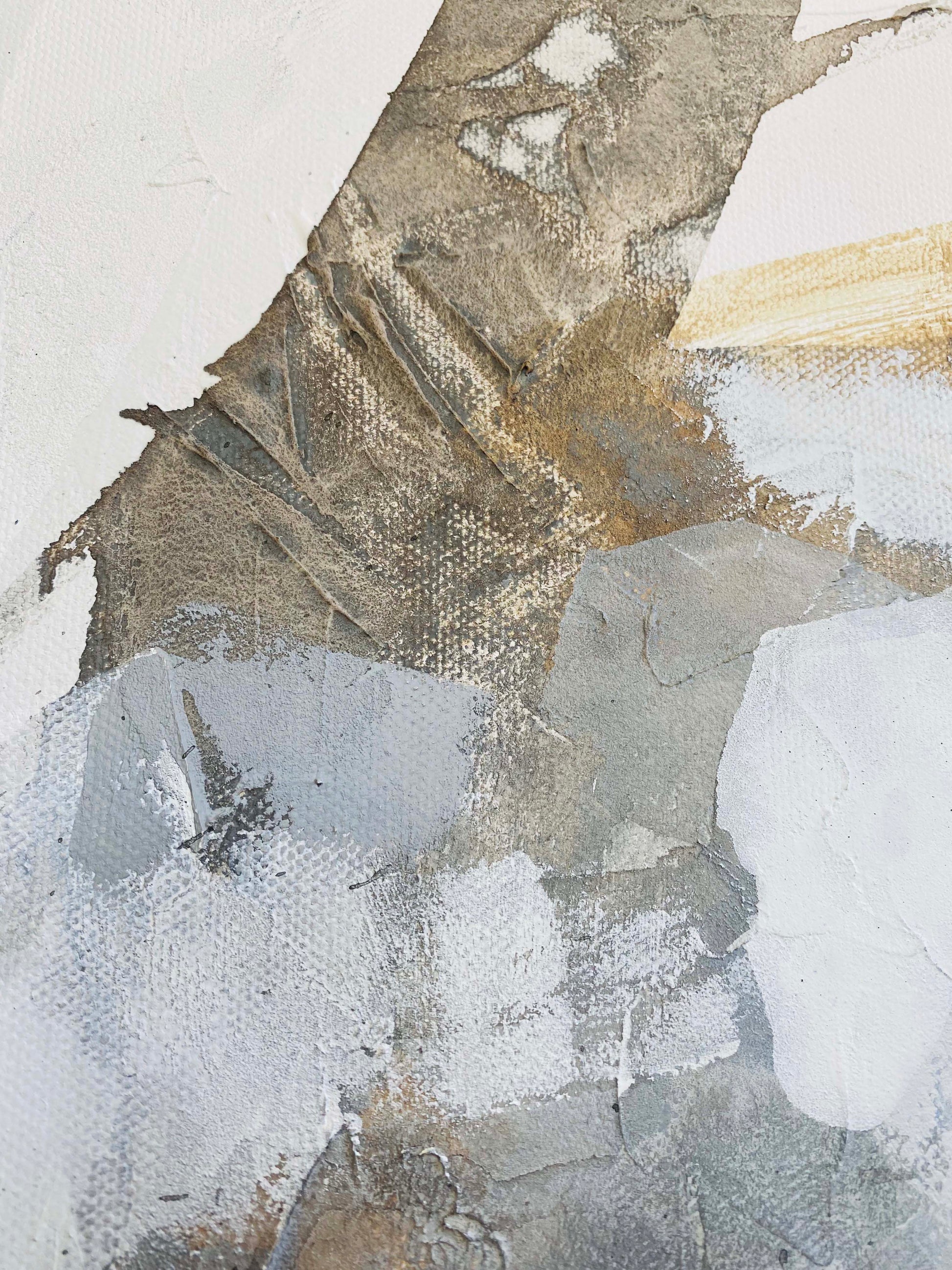 In this abstract piece, the movement of colors and gentle surface textures made from modeling paste creates a sophisticated harmony.